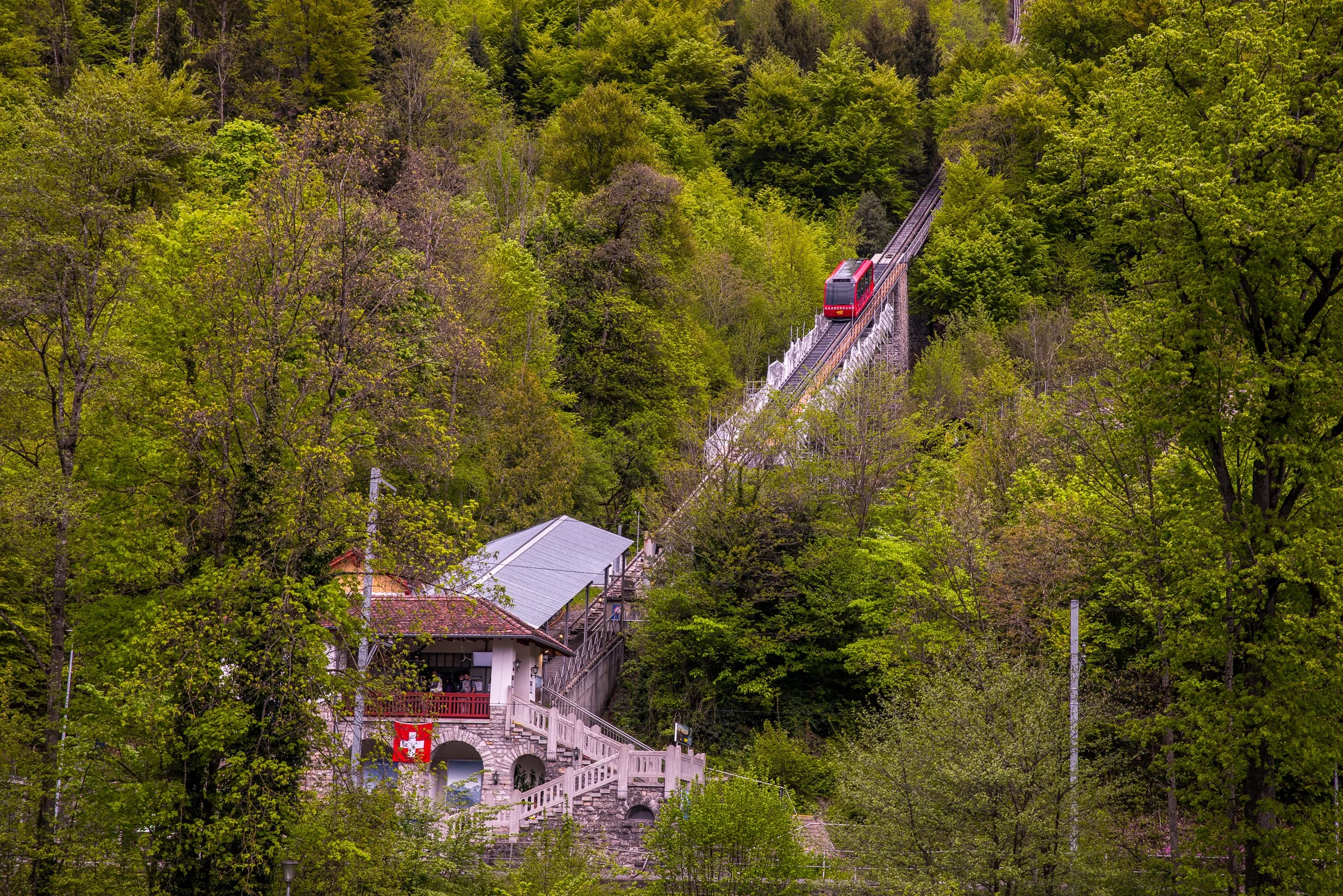 Travel Tip: Hop aboard the Interlaken Harderbahn, an over-century-old funicular railway, for a brief 10-minute journey to Harder Kulm, the nearest mountain to Interlaken.